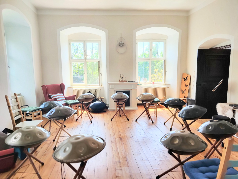 Um das in den Workshop Gelernte zu vertiefen und zu festigen finden in der Naturheilpraxis im Schloss Tapfheim regelmäßige Übungstreffen statt. Kommt vorbei, um eine schöne Zeit mit der Handpan und netten Leuten zu verbringen. Geeignet für Anfänger und Spieler mit Erfahrung. Für die Zeit des Übungstreffens stehen Leihinstrumente zur Verfügung.